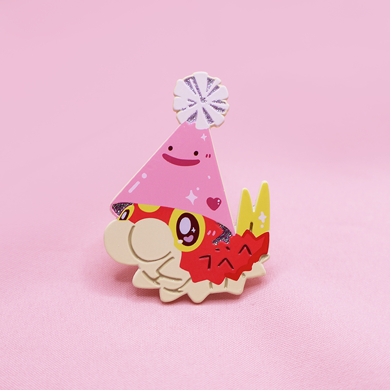 [SHINY DITTO] PARTY HAT WURMPLE [POKEMALLOW] SOFT DYED ENAMEL PIN