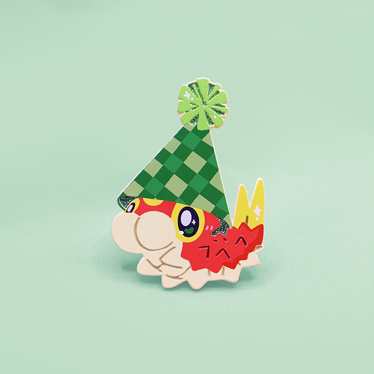 [ORANGE + GREEN] PARTY HAT WURMPLE [POKEMALLOW] SOFT DYED ENAMEL PIN